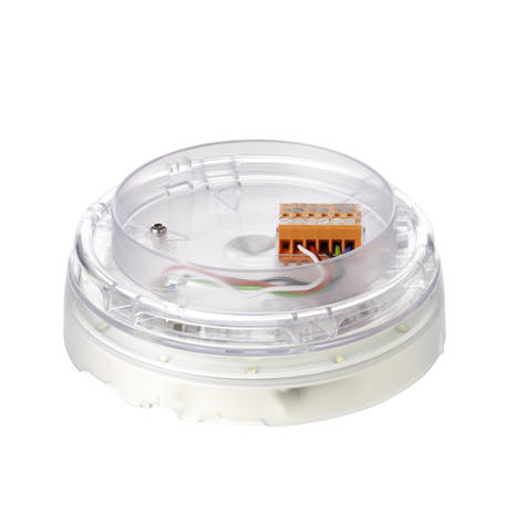 DIN VDE 0833-2 also stipulates the use of the permitted color. The preferred color for alarms is red. Currently in Germany, 90% of the alarms chosen have a red light. A clear light can be permitted in some circumstances, with the alarm system concept determined jointly by the operator and the authorities responsible. There can be good reasons to use a clear light, particularly in industrial settings. This is because almost every machine will have a red signaling device and this can lead to confusion and failure to identify a possible fire alarm clearly. Furthermore, signaling devices with a clear flashing light offer a larger coverage volume, which can allow fewer signaling devices to be used, thus cutting costs.