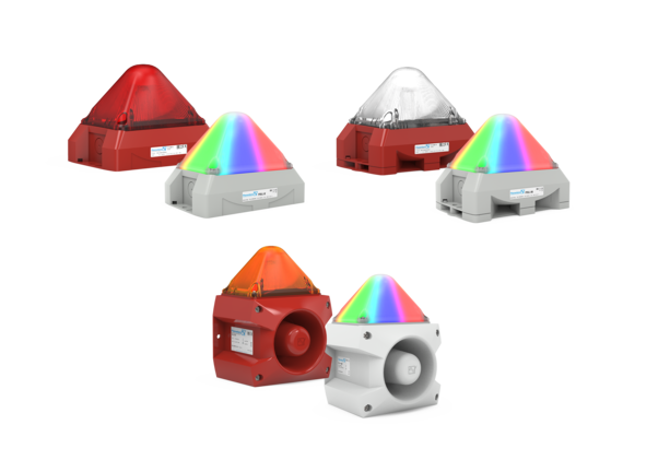 The new LED series comprises four different devices with several common advantageous features. For example, the blink and flash frequency as well as the visual signaling mode can be freely selected for all devices, what enables their use in numerous applications. With the exception of the function-monitored model, all devices are also available with either a single colour or a multi colour LED. With the latter different situations can be displayed with only one light. This saves unnecessary stockkeeping and offers maximum flexibility.