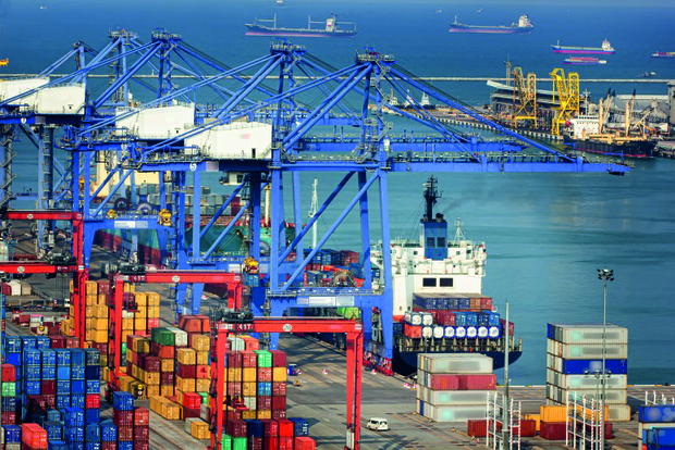 · On loading cranes in harbour facilities