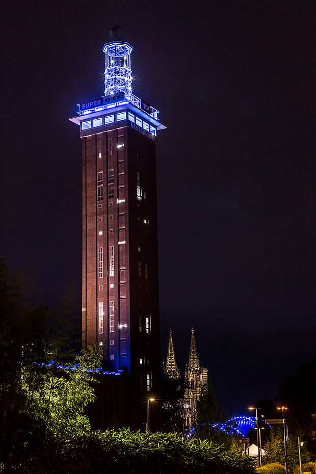 From 21–25 August 2018 the area surrounding the Cologne exhibition site is bathed in magical light. In 2018, the world's largest trade fair for interactive entertainment is celebrating its tenth anniversary with "Light it up! 10 years of Gamescom", a spectacular lighting installation. Art Illumination by Hamburg light artist Michael Batz creates a breath-taking showcase for lots of the city’s famous buildings. Some eye-catching examples are the 85 m tall Messeturm in Deutz, the Hohenzollern Bridge, the main railway station, the Cologne Tower, the Messehochhaus, as well as various hotels, buildings, ships on the Rhine and other bridges. The Quadro R flashing lights from Pfannenberg are being used at the Messeturm.